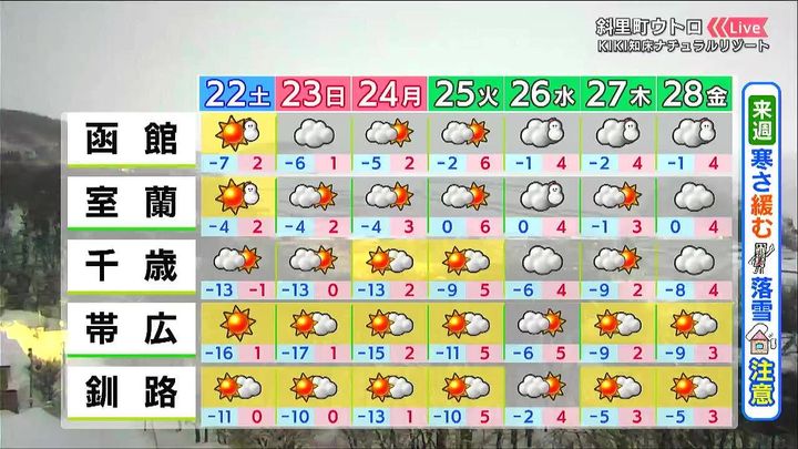 2月22日からの北海道の週間天気予報