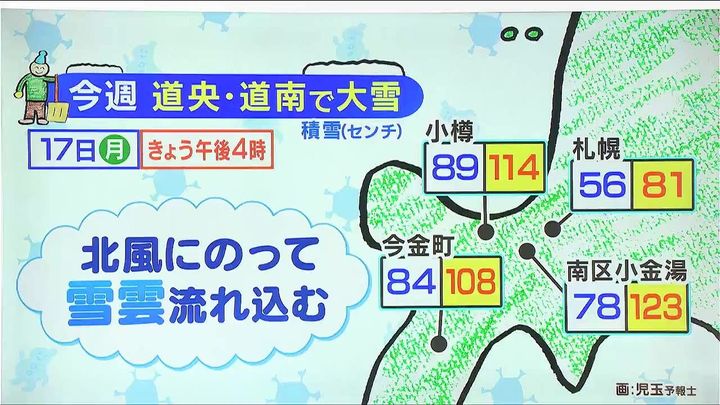 札幌は56センチから81センチ。札幌や小樽、今金町も20~30センチ増えていて、小金湯では50センチくらい増えました。今週は各地でこの冬一番の積雪となりました。