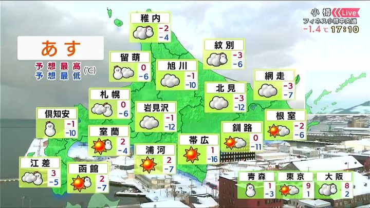 ・あすの北海道の天気と気温