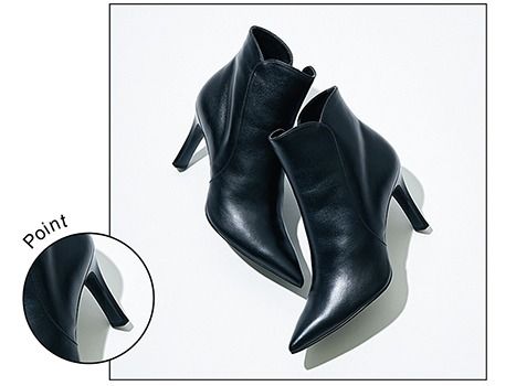 ポインテッドトゥブーツ(9)/ダイアナ(ダイアナ 銀座本店) 「足首のくびれた曲線デザインはそのまま、ロングノーズシルエットに変更したことで指づまりを軽減し、見た目も美しくなりました。さらに、ピンヒールから華奢な板ヒールになったことで歩行時の安定感がアップ」(プレス・齋藤綾乃さん)