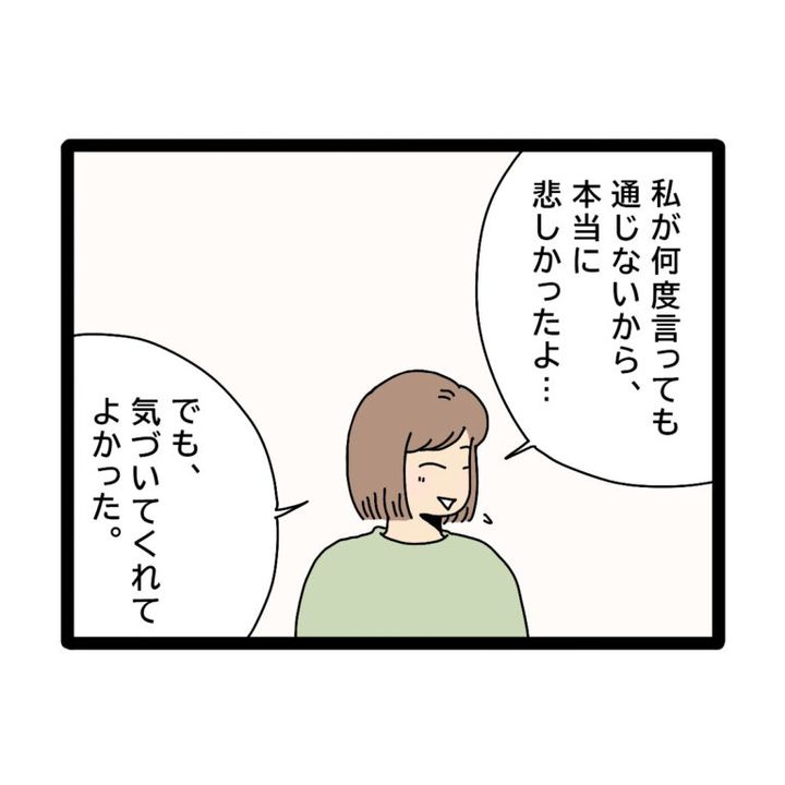 「私が何度言っても通じないから、本当に悲しかったよ・・。でも、気づいてくれてよかった」