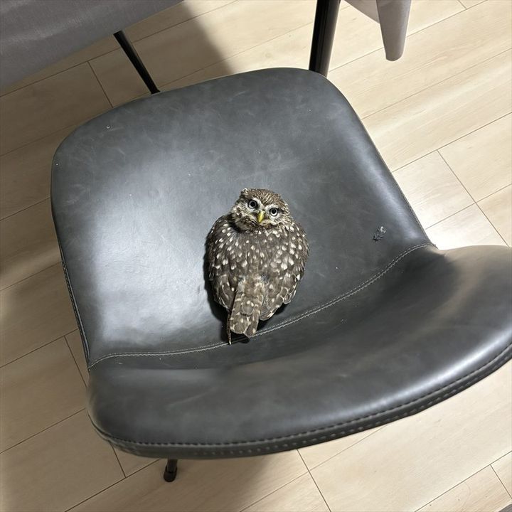 椅子を占拠していたフクロウ。 「絶対にどかない!」と主張するようなかわいい姿が話題になっています!