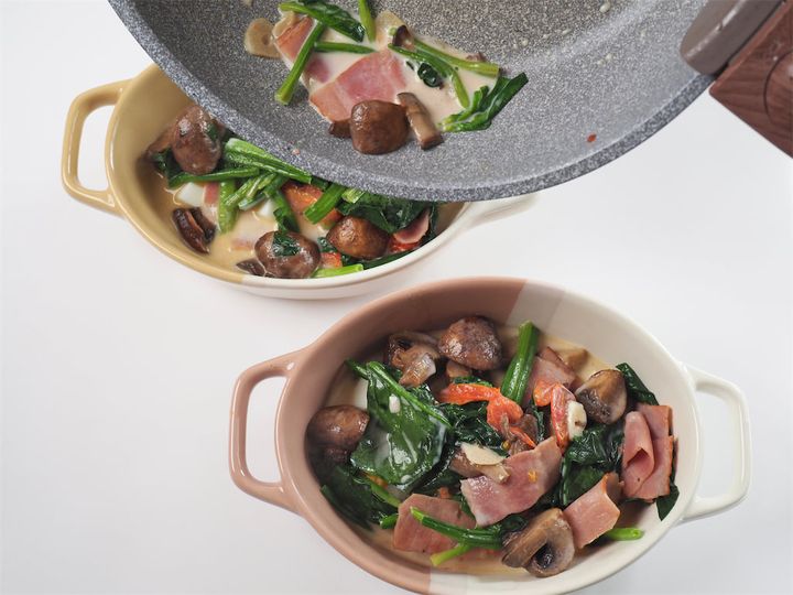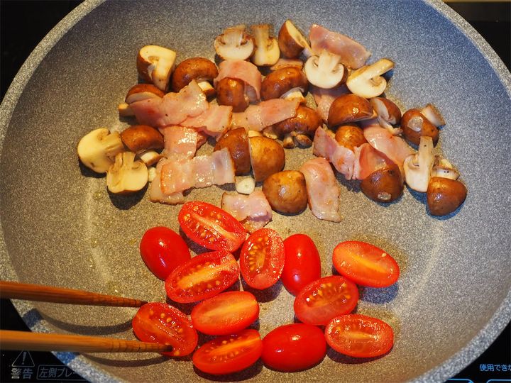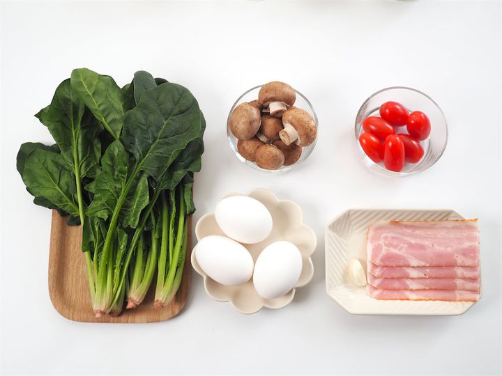 マッシュルームはお好みのきのこ、ベーコンはハム、野菜はアスパラやパプリカ、ブロッコリーなど、いろいろとアレンジしてもいいようです。楽しみ方無限大ですね。