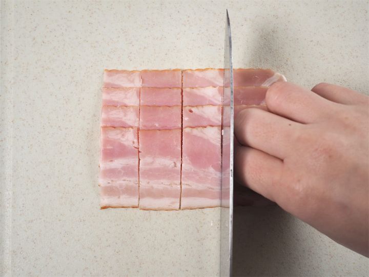 3. ベーコンを切る。
