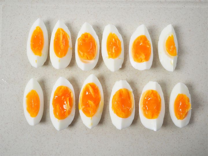 8. お皿に4のゆで卵を8個並べておく。