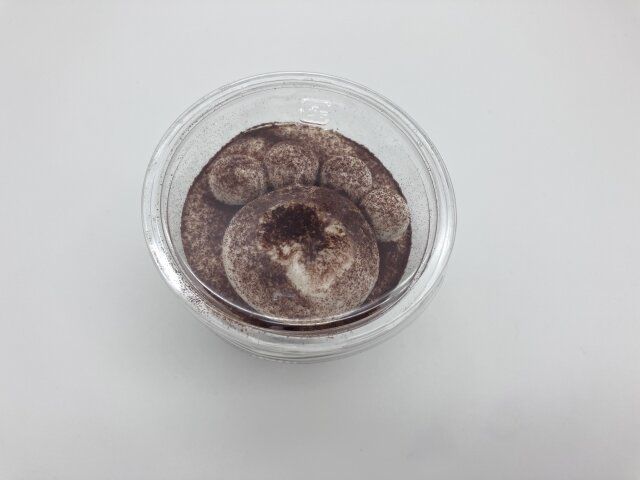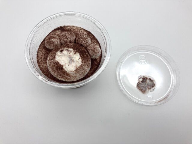 蓋に肉球のクリームがくっついてとれちゃいました…。でもクリームがたくさん入ってたからてっぺんについちゃったんだな、と思い直して、いざ実食。