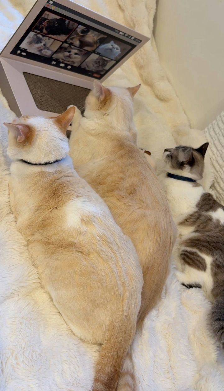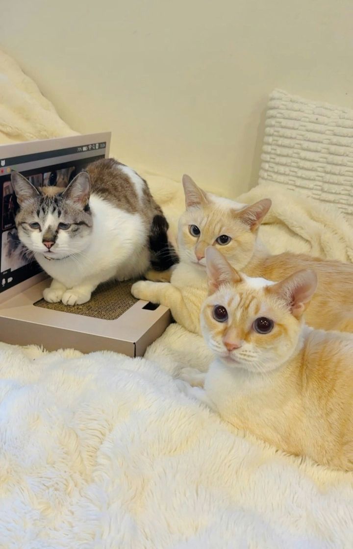 猫ちゃんたちがこの爪とぎに夢中になってPCに乗ることがなくなったら、それはそれで寂しくなりそう?とってもかわいくてほっこりするすてきな投稿でした。
