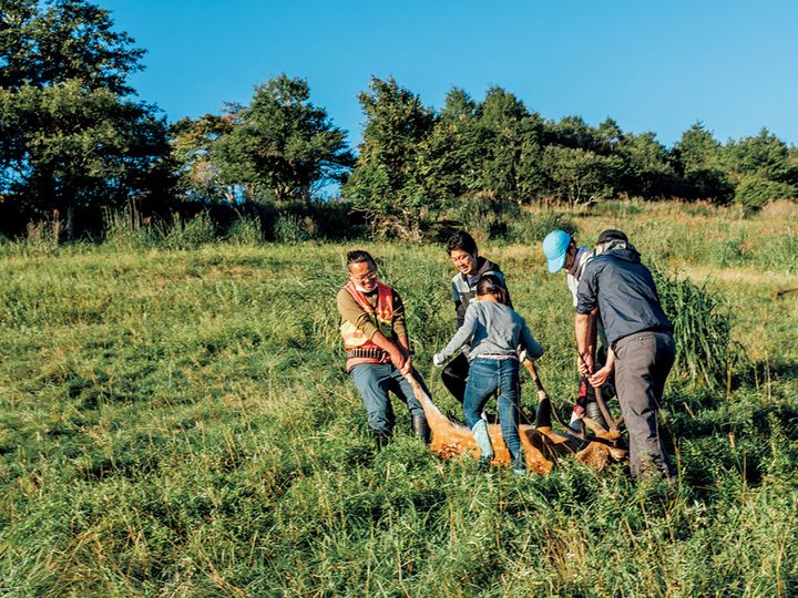 農家さんや漁師さんとともに「いただきます」の裏側の世界を体験できる長期滞在親子プログラム。子どもたちは体験に、保護者はその間滞在先でリモートワークに専念できる。日の出とともに猟師さんとシカを探し猟銃で仕留め、食用にするまでの全てを体験。他にも牛舎内でのお仕事体験やマグロの養殖場見学など、全国各地で命の大切さを直に学べる。