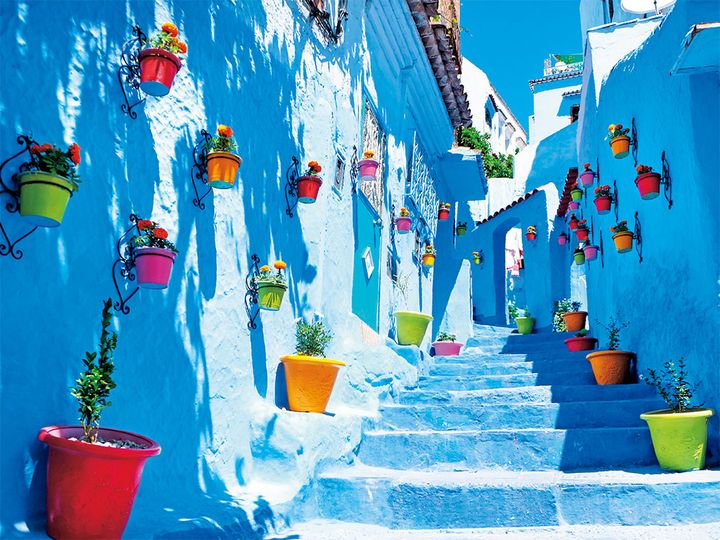 モロッコの真珠とも言われる青く輝く街で、虫よけや暑さよけのための青い塗料での壁塗りを体験。現地の邸宅・リヤドへの宿泊や伝統料理作りなど、モロッコの暮らしを体験。
