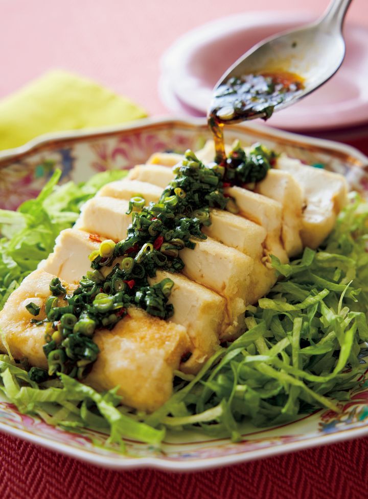 ねぎたっぷりのタレがおいしい! たんぱくな豆腐によく合います。