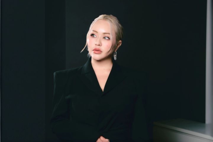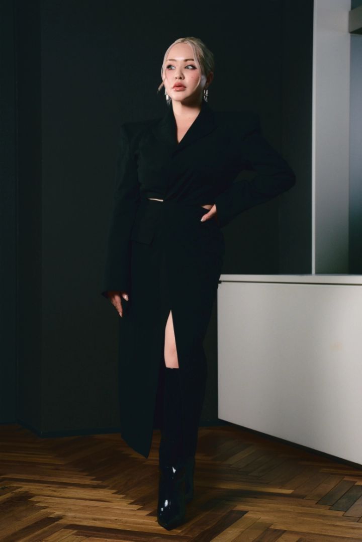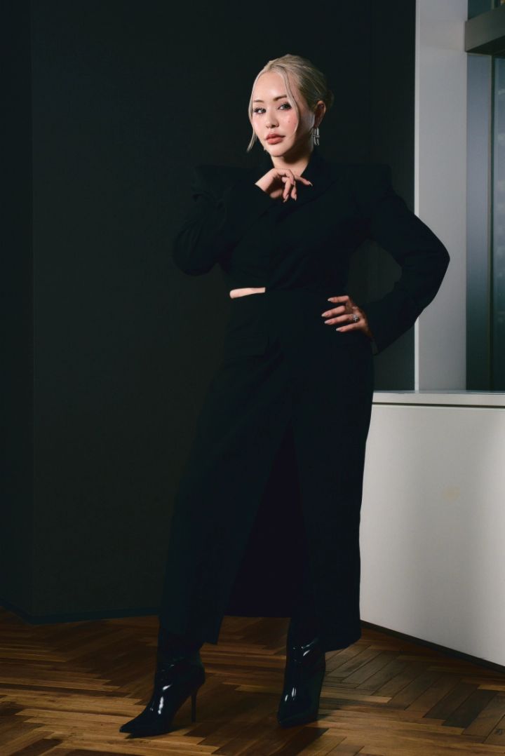 マリリン:肩パッドですね!(笑) 韓国のブランドのお洋服で、砂時計のようなシルエットを意識しています。服は、必ずメイクを完成させてから決めるようにしています。スッピンだと何着てもしっくりこないので、前日に服を決めるのがすごく苦手なんです。