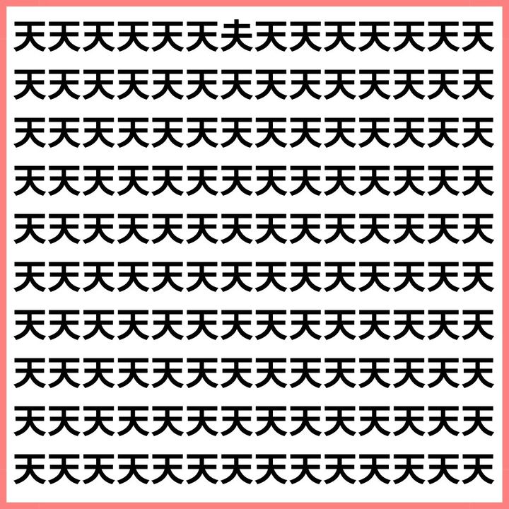 たくさんの「天」の中に、1文字だけ違う漢字が混ざっています。