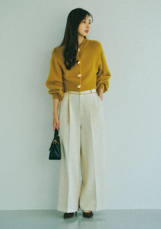 ニットカーディガン¥16,940/SNIDEL ルミネ新宿2店 パンツ¥20,900/ジャスグリッティー バッグ¥64,900/ケイト・スペードニューヨーク(ケイト・スペード) パンプス¥17,050/ダイアナ(ダイアナ 銀座本店)