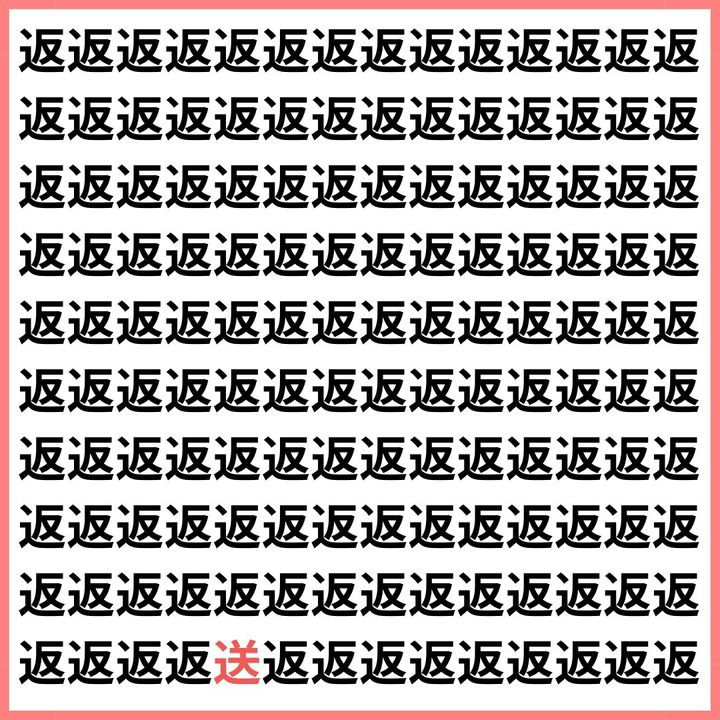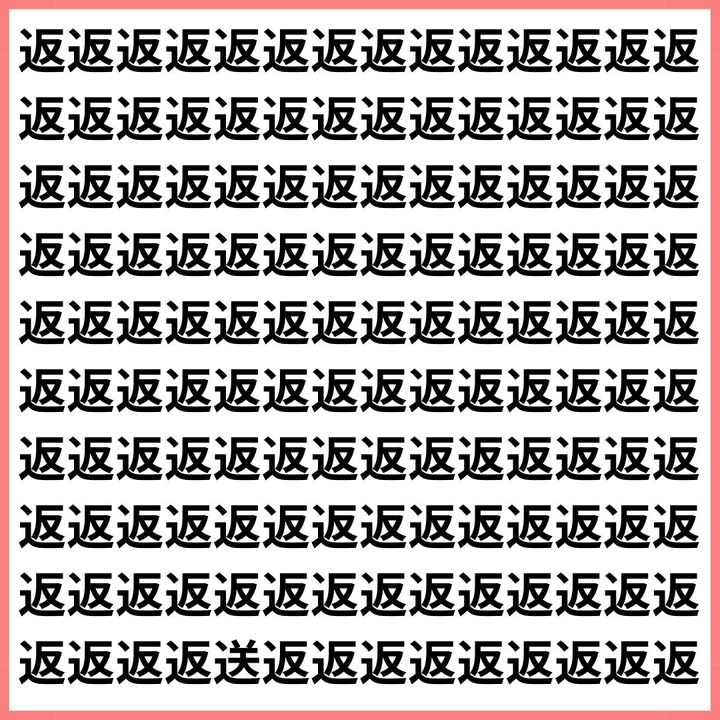 たくさんの「返」の中に、1文字だけ違う漢字が混ざっています。