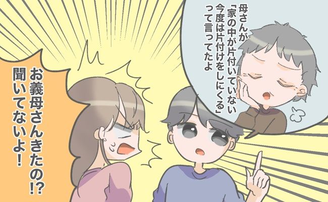 夫に聞いたところによると、義母はわが家をひと通りチェックし、「片付いていなさすぎる」「今度は片付けをしにくる」と言っていたらしいのです。