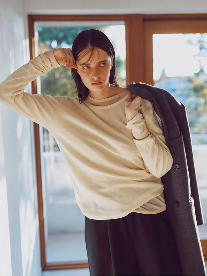 3. 【明日なに着る?】ウールやニットに似合って「春の稼働率も高い」オフ白のカットソー