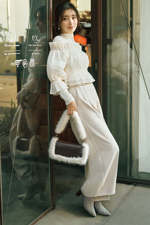 掲載:美人百花2024年2月号「”短めトップス”×”ハイウエストボトム”が最適解」