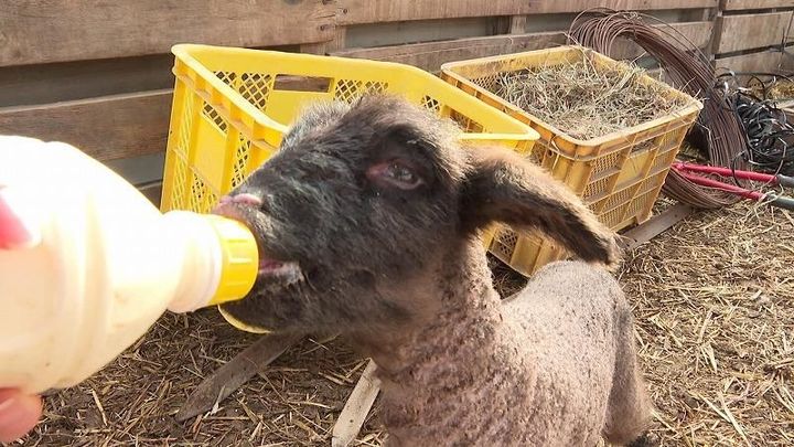 赤ちゃん羊は、お母さんに身を寄せて歩いたり、母乳を飲んだり、かわいらしい姿をみせています。