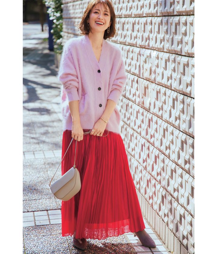 纏うだけで気分の高まる赤はフェミニンなピンク合わせで優しくまとめて好感度UP。冬コーデも停滞しがちなこの時期、HAPPYオーラ全開のカラーリングがマンネリ解消や新鮮な印象に一役買ってくれます。