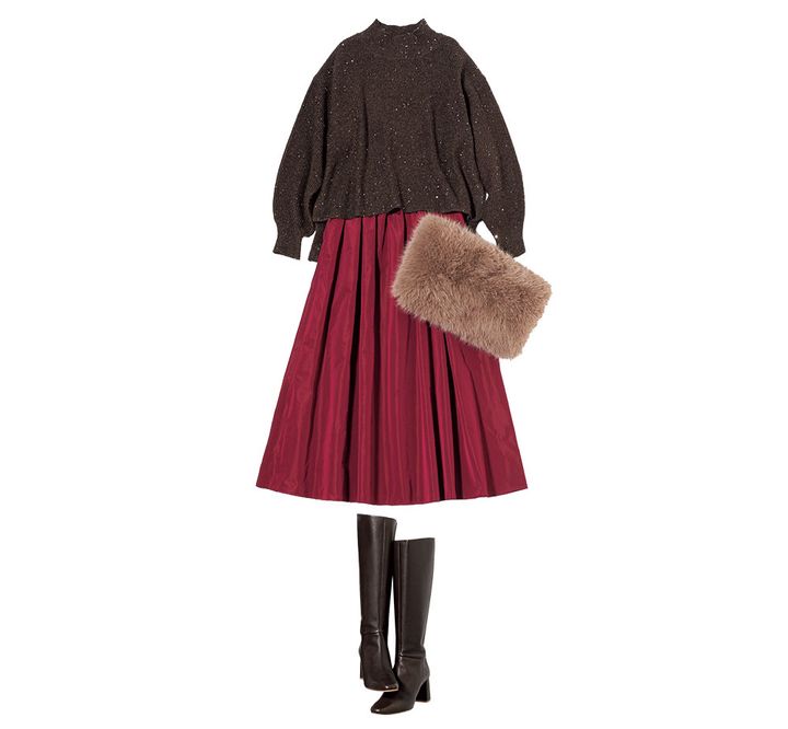 ニット[スカート付き]¥24,200(マイストラーダ)スカート¥28,600(プルミエ アロンディスモン)バッグ¥24,200(リンク)ロングブーツ¥43,450(ダイアナ/ダイアナ 銀座本店)
