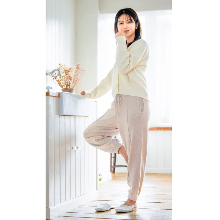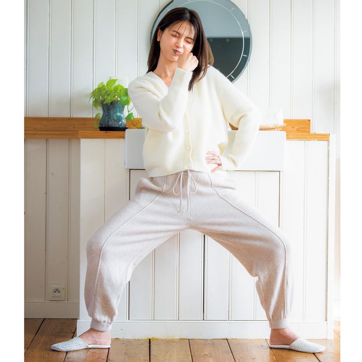 カーディガン¥17,990(イェッカ ヴェッカ/イェッカ ヴェッカ 吉祥寺)ニットパンツ¥10,900(Gap)スリッパ/スタイリスト私物