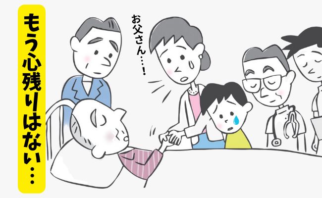 自宅に帰ってきた父は、入院時とは打って変わって穏やかになり、看護師や主治医の訪問診療を受けて、それから2カ月家族で過ごせました。ほとんど寝て過ごしましたが、起きているときにはしっかり会話もでき、父は「もう心残りはない」と言っていました。