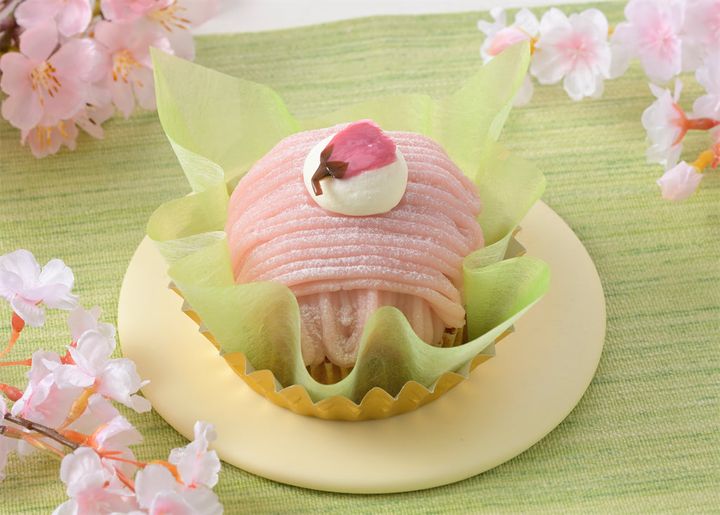 桜風味のマドレーヌに、粒あんと抹茶あんを重ね、さらに抹茶クリームと桜あんで包んだ、和テイストのモンブラン。