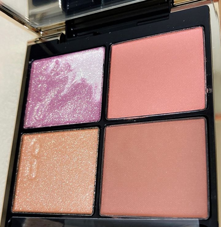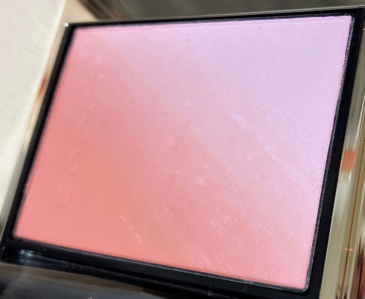 お次はチーク!赤みのあるピンクとやや蛍光みも感じる透けたような明るい青みピンクのグラデ。ピンクラメが浮かんでいて、見てるだけよりつけると本当にかわいいですよ!