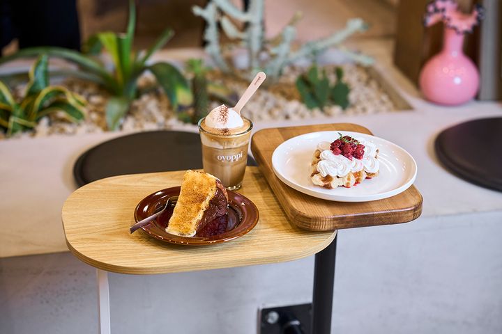 洗練された韓国インテリアで、本格スイーツと映えドリンクを楽しめる「oyoppi coffee」。大人気で平日でも満席になることもあり、時間帯によっては待つこともあるそうです。オープン時間の11時の来店であれば比較的空いているとのことなので、早い時間を狙って訪れてみてはいかがでしょうか。