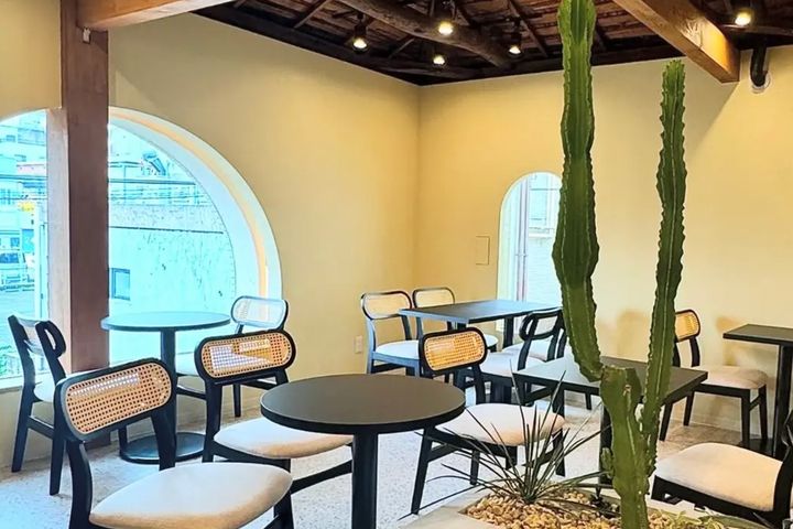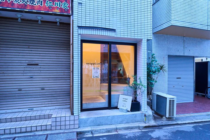 2024年にオープンした「oyoppi coffee」。大久保通り沿いにあるパチンコ店「グランパ大久保」の路地を入ってすぐ、韓国家庭料理焼肉店「仁川家(じんちょんげ)」がある建物の2階にあります。コスメ店や雑貨店がひしめきあうメイン通りからもアクセスがよく、買い物の合間にほっとひと息つくのにぴったりです。
