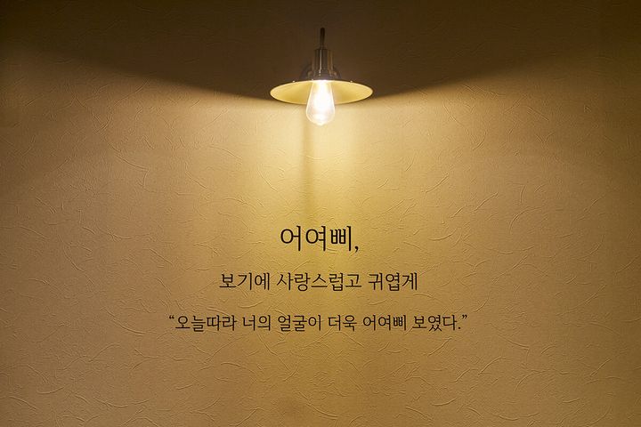 階段沿いの壁には、韓国語で描かれたメッセージがダウンライトに照らされていておしゃれ。「オヨッピ、愛らしくてかわいい、さらに今日はかわいく見えるよ」といった意味のメッセージが描かれています。店名であるオヨッピ=oyoppiは、韓国語で「キレイ・かわいい・すてき」といった意味の古風な言いまわしだそう。意味も発音もかわいいですね。