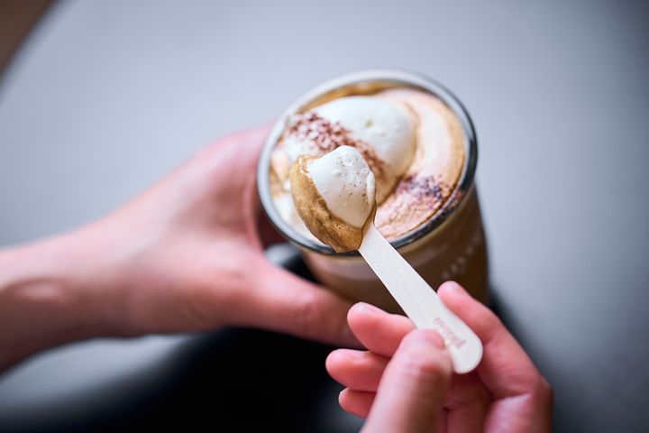 こちらのドリンクは、「アインシュペナー」とよばれるもの。アインシュペナーはオーストリア発祥のドリンクで、数年前から韓国で大流行しています。上のクリームをすくって食べつつ下のビターなラテと混ぜると、甘さとほろ苦さが絡み合って絶妙なおいしさ。スイーツ感覚で味わいつつ、コーヒーのしっかりとした苦みや風味を感じることができます。