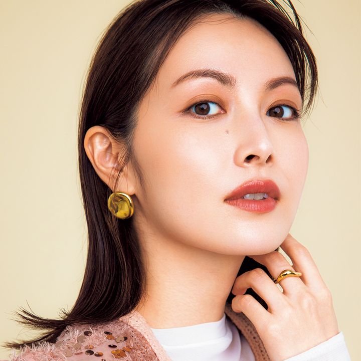 〈衣装クレジット〉ピアス¥3,900(soie/ロードス) リング[左]¥12,100(ジュエッテ) その他、スタイリスト私物