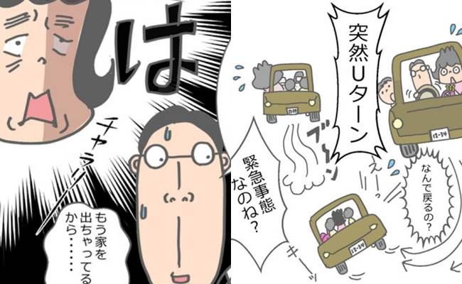 子どもたちが小さかったころのこと。家族で旅行先に向かっていると、夫の母親から携帯に電話がかかってきました。電話に出て用件を聞いた夫は、突然Uターンして家に戻ろうとするのですがその理由が……!