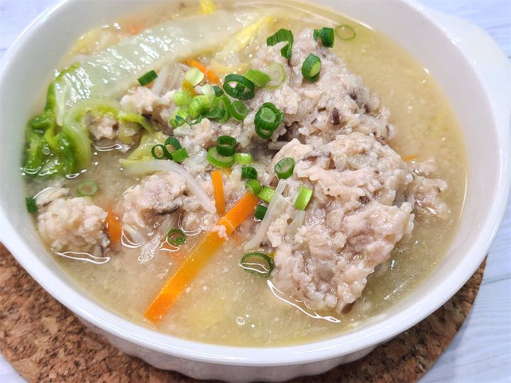 ふわふわ食感のつくねがたっぷり!野菜もたっぷり具沢山な簡単ヘルシースープレシピでした♪