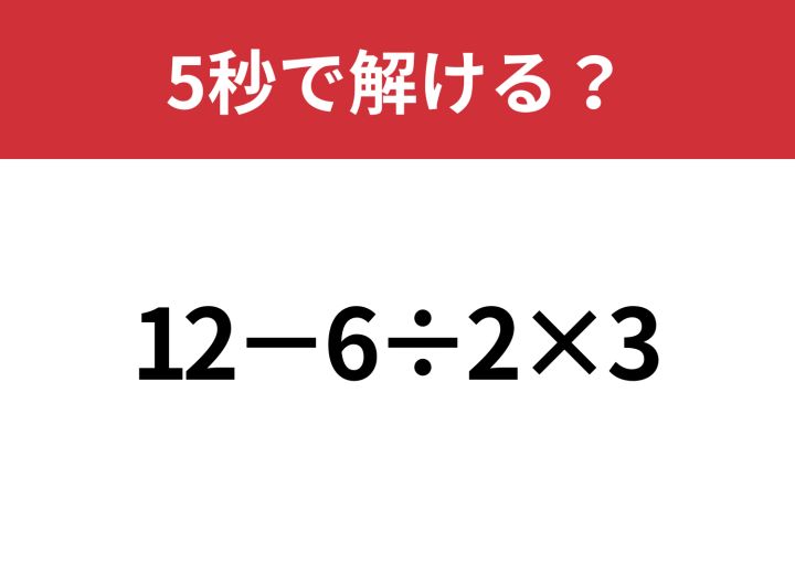 大人が間違えたら恥ずかしいかも!?「12−6÷2×3」5秒で解ける?