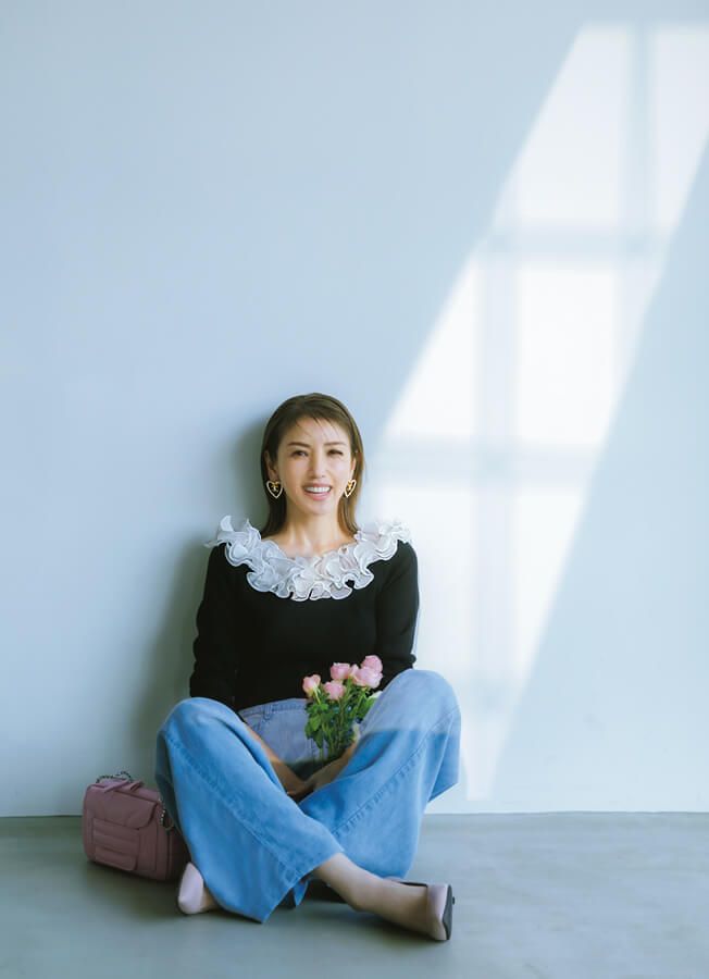 ピアス、バッグ/ともに美香私物 ニット¥14,300/Noëla(ヒロタ) デニム¥39,600/ダブルスタンダード クロージング(フィルム) パンプス¥17,600/ダイアナ(ダイアナ 銀座本店)