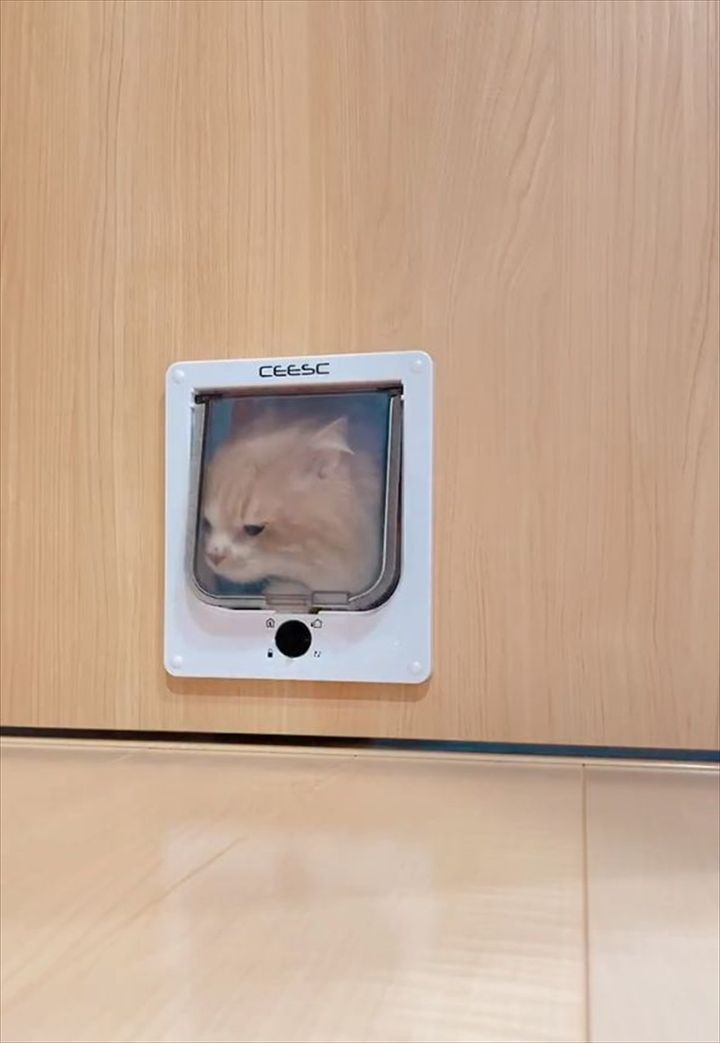 3. ペットドアを初めてくぐるネコがかわいすぎると話題に「何度も見たくなる」「最初に顔だけ出すとこがもう」