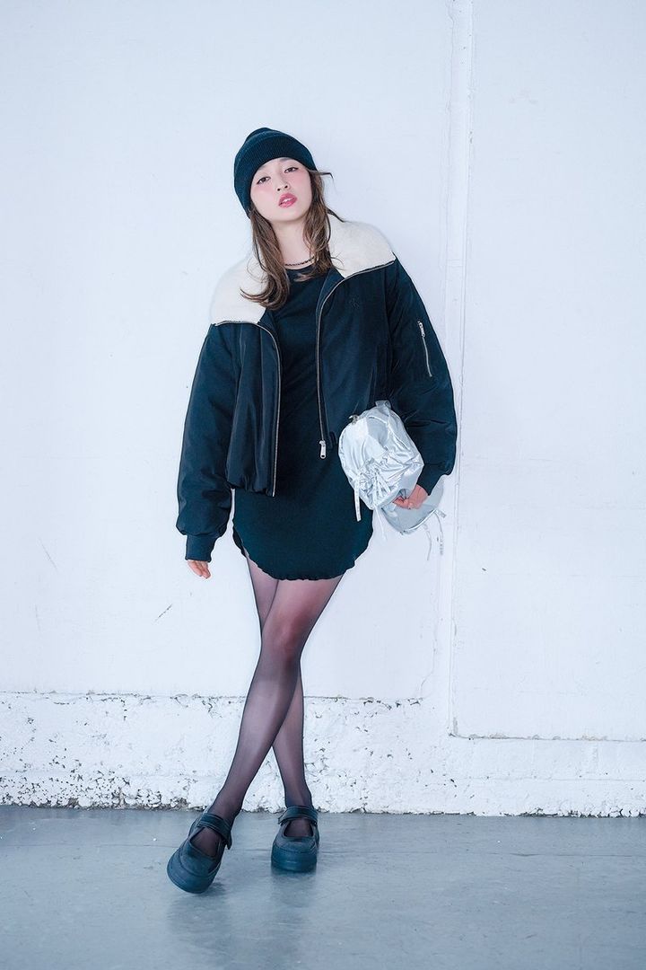 上西星来。ar1.2月合併号より メリージェーン¥26,400/モリーニ(ジャッ ク・オブ・オール・トレーズ プレスルーム) タイツ¥1,100/靴下屋(タビオ) ジャケット ¥55,000/カルバン・クライン(カルバン・ク ライン カスタマーサービス) ワンピース¥ 9,900/ピルグリム サーファー+サプライ(ビ ームス公式オンラインショップ) ニット帽¥ 6,930/オーバーライド(オーバーライド 神宮 前) ネックレス¥2,420/アネモネ(サンポー クリエイト) バッグ¥12,940/ヨミム(ハナ)