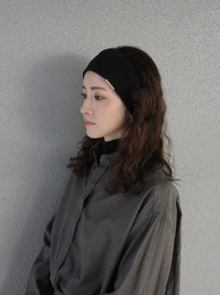 「ヘアバンドはリバーシブルでも使用できる優れもの。キレイめにしたいときはフラットでプレーンな面を、少しカジュアルやスポーティさを出したいときはリブ面を見せてスタイリングしています。テイストに合わせて雰囲気を変えられるのも、コーデの幅が広がってとても便利です」ヘアバンド¥11,000(エントワフェイン)
