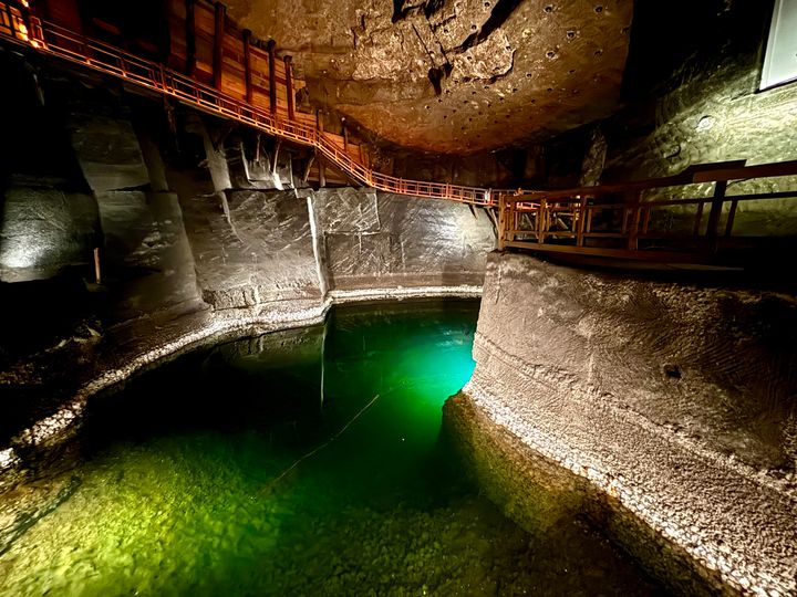 また、地下130mには塩湖が広がり、船で湖面を楽しむことも可能です。健康にも良い環境であり、療養のためのサナトリウムの施設もあるのだとか。