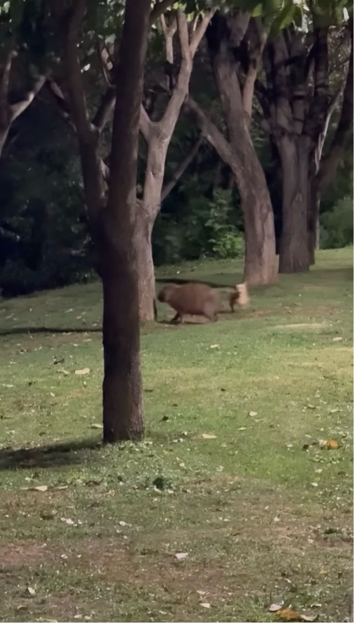 イヌが追いかけっこをしていたカピバラ。 驚きのその光景は、こちらの動画からご覧いただけます。