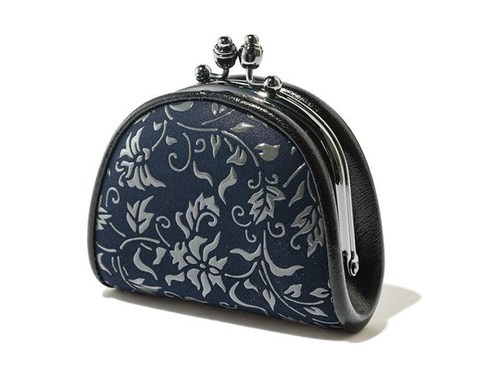 柔らかな鹿革に長寿や繁栄の象徴とされる唐草と花の模様をON。マチ付きのデザインで型崩れしにくく、小物やアクセサリーケースとしても活躍しそう。