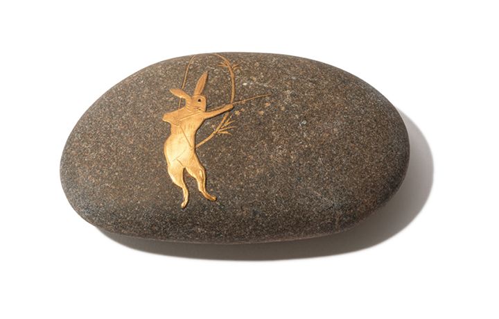鳥獣戯画の弓を射るうさぎを華やかな蒔絵で表現。