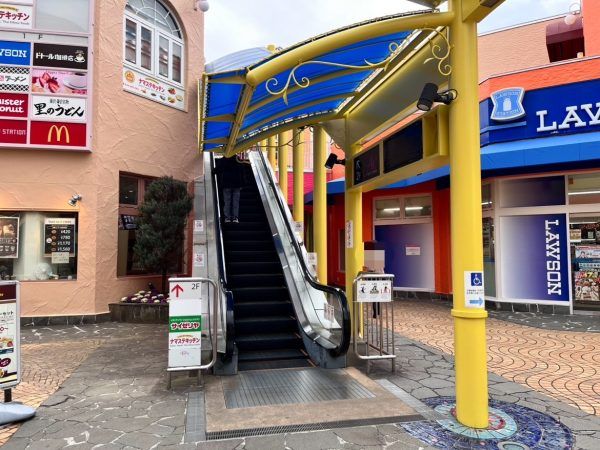 クレープが美味しい「ディッパーダン」さんと「ローソン」さんの間にあるエスカレーターを登った先、「喜多方ラーメン坂内」さんや「里のうどん」さんの上になります。