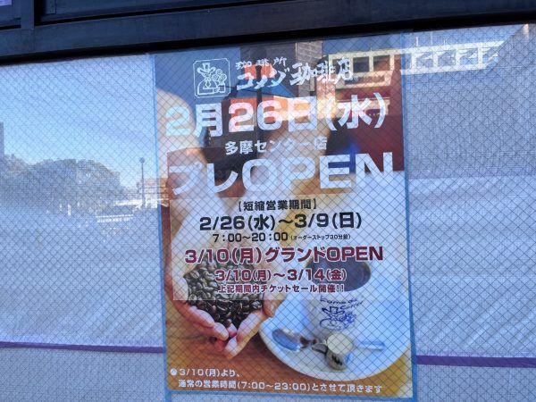 【開店】2/26待望のプレオープン!『コメダ珈琲店多摩センター店』