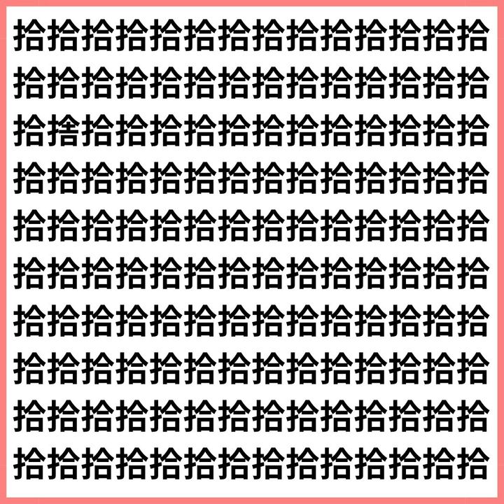 たくさんの「拾」の中に、1文字だけ違う漢字が混ざっています。