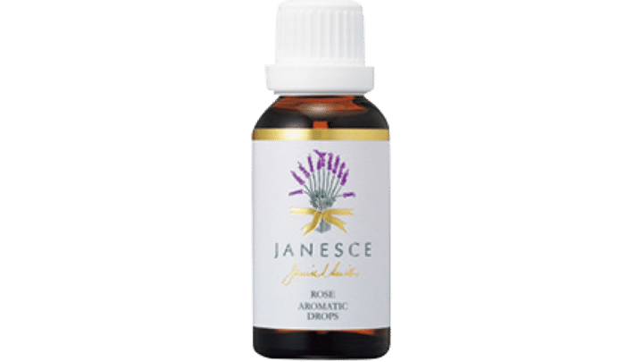 スキンケアはシンプル。朝の洗顔はローズエッセンスを数滴入れたお湯ですすぐだけ。ジャネス ローザ アロマチック ドロップ 30mL ¥4,950(シンシアガーデン)