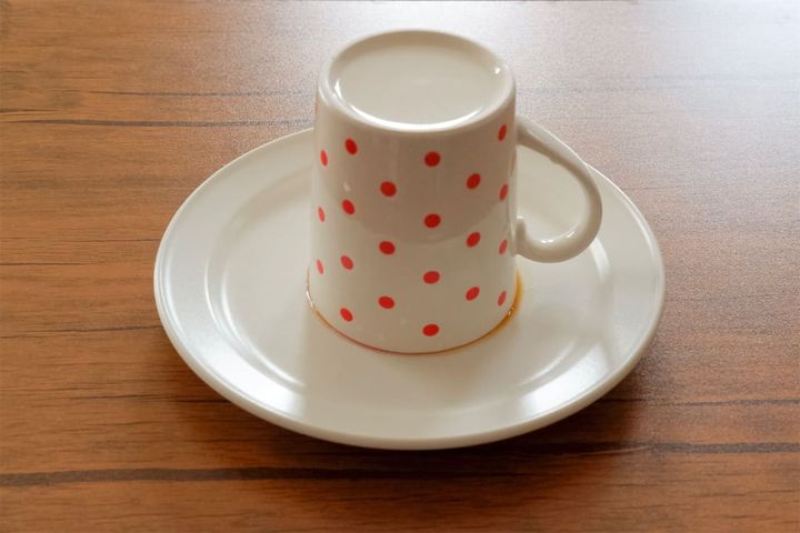 マグカップは電子レンジで使用できるものを用意します。今回は、高さ9.2cm、容量310mlの陶器製マグカップを使いました。