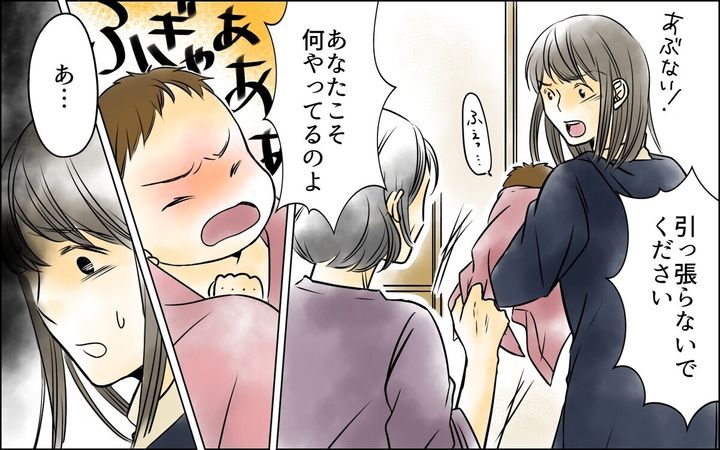 ・私の最初の子どものことを思い出しました。仕事があって、うちに住み込んで子どもをみてくれていた夫の祖母は、私が帰宅しても子どもを返してくれませんでした。それが辛くて辛くてしょうがなかったので、結局仕事をやめました。そして、祖母には自宅に戻ってもらいました。この漫画を読むと、あの頃の辛さを思い出します。どういう展開になるのでしょうかね。